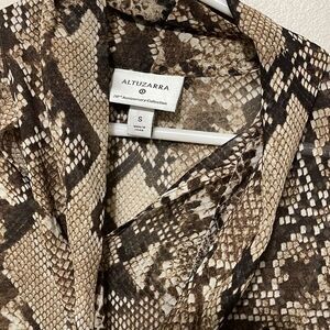 Beautiful, excellent condition Altazurra for Target tie collar blouse. Brown python print. Polyester