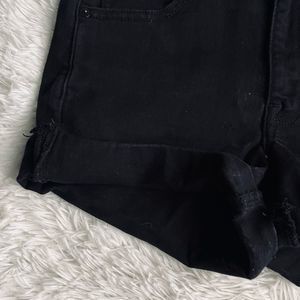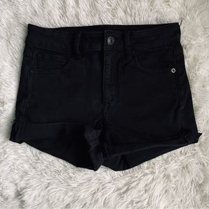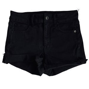 EUC American Eagle Black Denim Hi Rise Shortie Cuffed Jean Shorts 6
