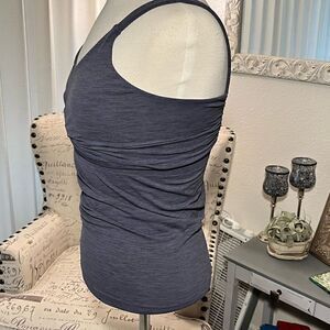 Excellent condition gray Athleta tank top. Crisscross bodice, wide straps and crisscrossed back with small openings.