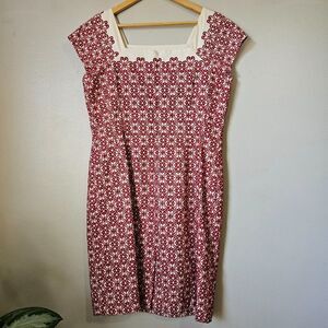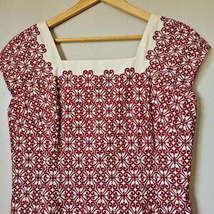 EUC BEAUTIFUL TALBOTS RED EMBROIDERED SHIFT DRESS SIZE 12