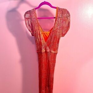 EUC-BEBE ORANGE- GOLD MESH NET DRESS SZ MED