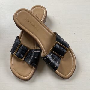 EUC Black Leather Slip-On Slide Sandals Naturalizer Size 8.
