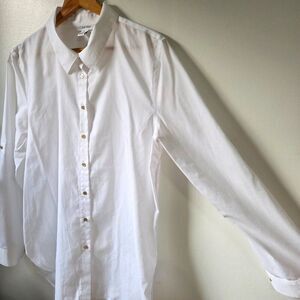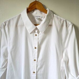 EUC CALVIN KLEIN WHITE WITH GOLD BUTTONS BUTTON DOWN SHIRT SIZE LARGE WOMEN