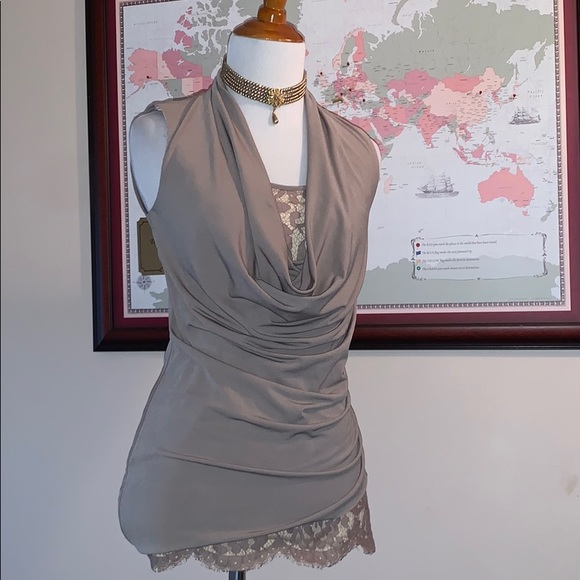 CARMEN sexy ruched too in a rich Taupe color
