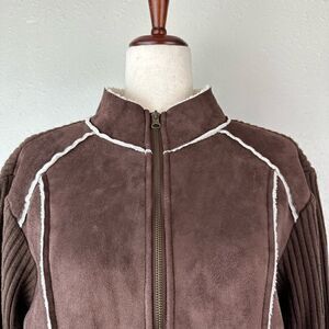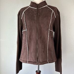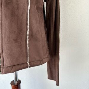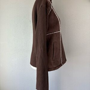 super cute brown jacket! measures 23 inches armpit to armpit and 22 inches shoulder to hem