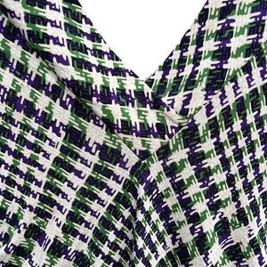 Excellent condition; Beautiful cream, purple, green silk; pit to pit measures approx. 16.5“ across and stretches; shoulder to hem measures approx. 41“; smoke free home; c-