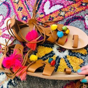 Forever 21 Brown Multicolor Pompom Sandals