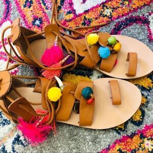 EUC Forever 21 Brown Multicolor Pompom Sandals 6.5