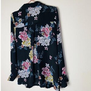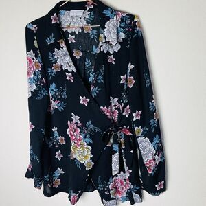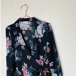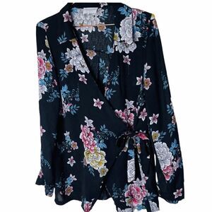 EUC Francesca’s Emelia Black Wrap Floral Top Small