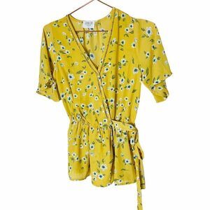 EUC Francesca’s Sienna Sky Yellow Floral Top XS