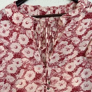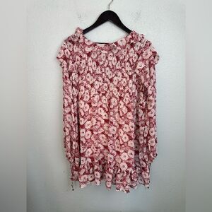 super cute red and cream floral dress! measures 20 inches armpit to armpit and 42 inches shoulder to hem
