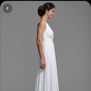 Having a really hard time parting with this Grecian Goddess Wedding Prom Ivory Dress because I absolutely love it, but it needs to go. It has been dry-cleaned and I haven't taken it out of it's garment bag in 10 years. Slight un threading at bottom hem. The dress is off-white, classy, flowy + BEAUTIFUL! This preowned wedding dress is simple enough to double as a prom dress or even a bridesmaid’s dress. 🤩👌