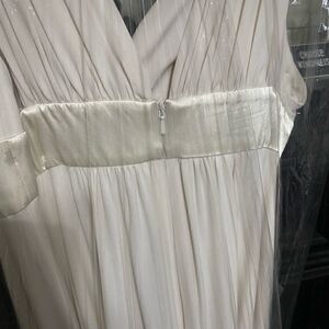 Having a really hard time parting with this Grecian Goddess Wedding Prom Ivory Dress because I absolutely love it, but it needs to go. It has been dry-cleaned and I haven't taken it out of it's garment bag in 10 years. Slight un threading at bottom hem. The dress is off-white, classy, flowy + BEAUTIFUL! This preowned wedding dress is simple enough to double as a prom dress or even a bridesmaid’s dress. 🤩👌