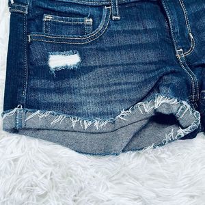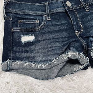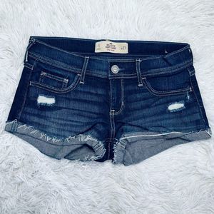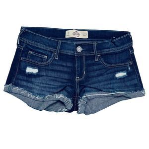 EUC Hollister Low Rise Short Short Dark Wash Denim Cuffed Raw Jean Shorts 5 27