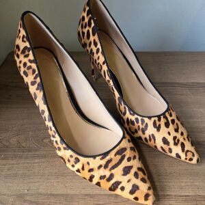 EUC JESSICA SIMPSON CARPENA REAL COW HAIR FUR UPPER ANIMAL PRINT STILETTOS 9.5