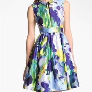 EUC Kate Spade Carissa Fit & Flare Collared Watercolor Sleeveless Dress