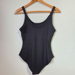 EUC LIKE NEW GIRLFRIEND COLLECTIVE RIBBED BLACK SCOOP NECK TANK BODYSUIT SIZE M