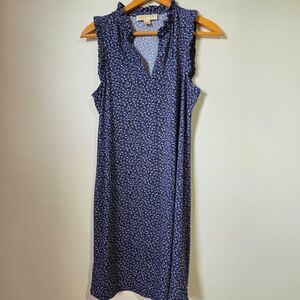 EUC LIKE NEW MICHAEL KORS DITSY FLORAL SPLIT V NECK RUFFLED SLEEVELESS DRESS S