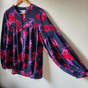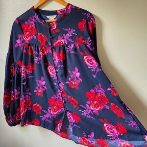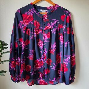 EUC LIKE NEW OPHELIA ROE FLORAL BUTTON DOWN PUFFED LONGSLEEVES TOP SIZE SMALL