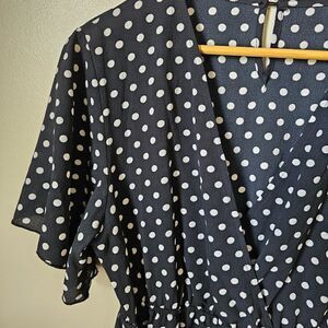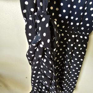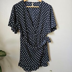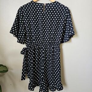 EUC LIKE NEW POLKA DOT WHITE BLACK SURPLICE NECK ROMPER FAUX WRAP SZ L