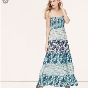 EUC LOFT Beach Strapless Tube Maxi Dress {blues} M