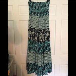 Beautiful strapless maxi dress by Loft Beach. Various tiers of different blues. Unlined. Size medium. Top is tube style with stretch. Top of dress measures 14.5” across unstretched. Top to bottom measures 51.5” long. 100% rayon. Excellent condition.