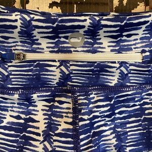 Size XS. No flaws. All washed and nice and fresh. From smoke free home. Watercolor lines blue. Nice zipper pocket in back. Mid compression.