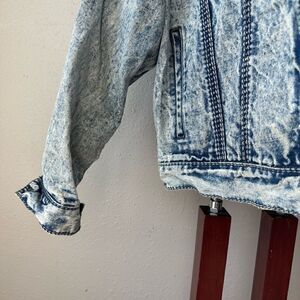 super dope acid wash denim jacket! measures 27 inches armpit to armpit and 25 inches shoulder to hem
