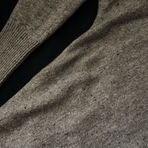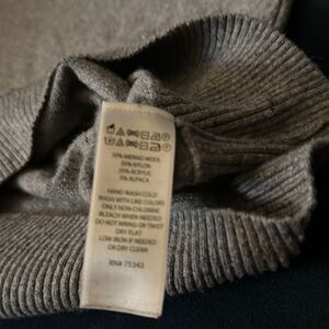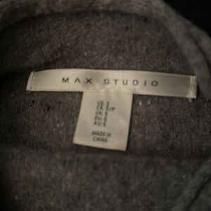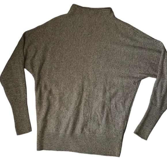 EUC-MAX STUDIO WOOL BLEND SWEATER, size small, grey with black specks, mock neck and slight DOLMAN balloon sleeve, soft, cute ribbing detail at sleeves and waist