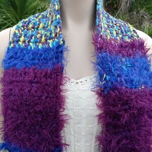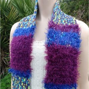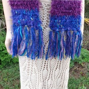EUC MOSSIMO SUPPLY CO. Vibrant Multicolored Blue/Purple Knit Scarf with Fringe