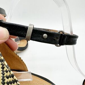 EUC Madewell Marcel Black Leather Sandals w/Woven Raffia Heels Sz 8.5