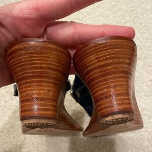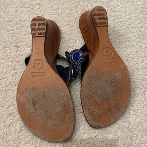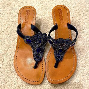 EUC Mystique Wedge Sandals Sz. 8 Blue Beaded Rhinestones
