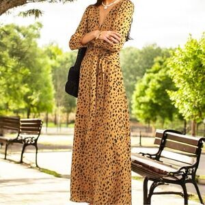 EUC Nicholas Tie Front Leopard Print Silk Maxi Dress Size 14