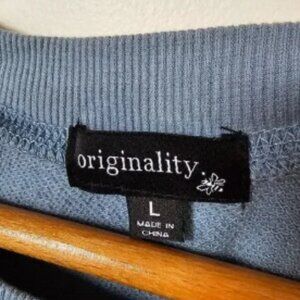 EUC ORIGINALITY LIGHT BLUE DRY GOODS PRINT CREW NECK PULLOVER SWEATER SIZE L