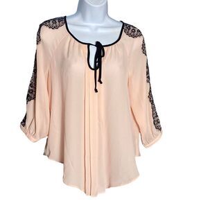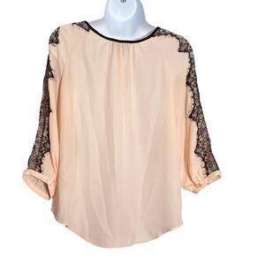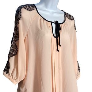 Pink with black lace 3/4 button sleeve top EUC Never worn HG-7