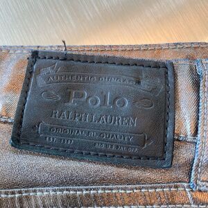 EUC Polo Ralph Lauren metallic silver skinny jeans with black leather logo patch. Size 30. Super flattering and comfortable. “Tompkins Skinny”. 98% cotton and 2% elastane. RN 41381. Supplier number 25778. PO number 470-042-6517