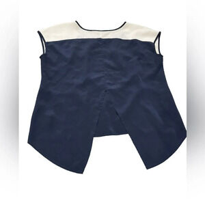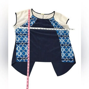 EUC Rebbeca Minkoff Silk sleeveless top navy and white geometric print XS Oversized please look at measurements