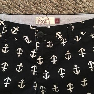 EUC -SO anchor jean shorts- Size 5 in Junior's , excellent condition, worn once, pockets in the back♥ Bought from Junior's Department but Women can also wear___Great for petite women too.:-). These are unique stylish and really hard to find shorts.
