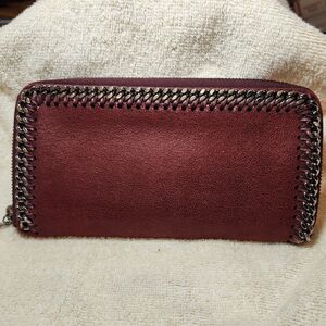 EUC STELLA MCCARTNEY WALLET ZIP AROUND FALABELLA ECO CHAIN Burgandy/Maroon