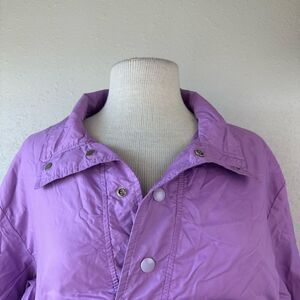 super cute purple button down windbreaker. measures 21 inches armpit to armpit and 21 inches shoulder to hem