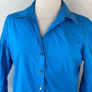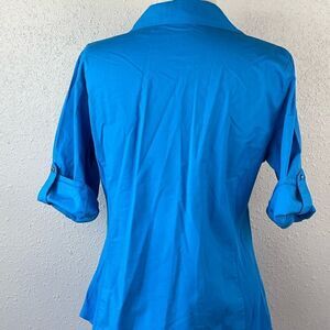 EUC Sharagano Womens Blue 3/4 Sleeve Button Down Top Size L