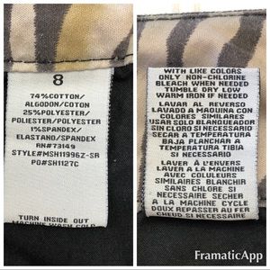 These are super cute shorts for the summer! Cuffs have tab details to keep the cuff from rolling down. Front pockets and back button pockets. Zebra design inside the waistband and cute pattern on the buttons! Nice details!