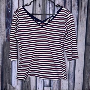 |EUC| TOMMY HILFIGER Striped Half Sleeve V Neck Top
