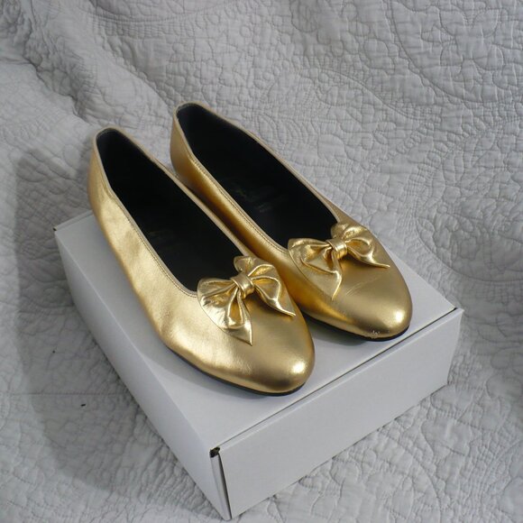 EUC-Tictactoes Gold Metallic Leather Flats with Bows- Size 13W