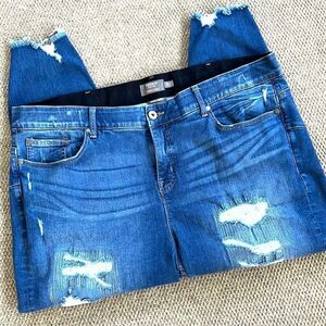EUC Torrid Bombshell Skinny Premium Stretch High-Rise Deconstructed Jeans