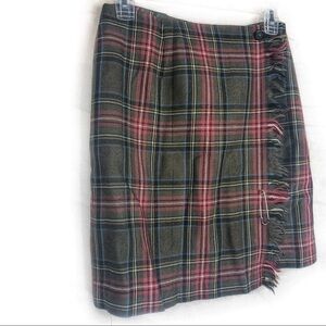 EUC-VINTAGE Rafaella Wool, Green/Orange Plaid, Fringe, Button Closure Wrap Skirt
