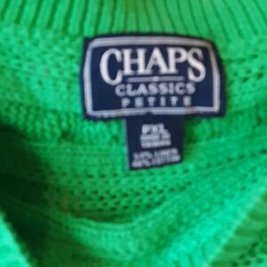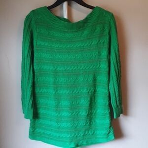 CHAPS CLASSICS PETITE Kelly green crewneck, cable knit sweater with 3/4 sleeves. Womens size PXL or petite extra large.In very good preowned condition.No stains or flaws. Feel free to ask any questions and make reasonable offers! Bundle and save!