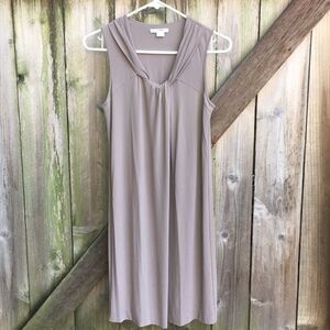 Excellent pre-loved condition; beautiful minimalist design in this soft, slinky acetate/poliamid/6% spandex dress; lined; no buttons/zipper; approx. 36" long; pit to pit measures approx. 17" across but stretches; Smoke-free/pet-free home.