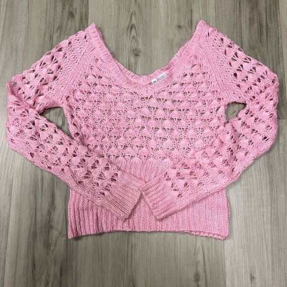 EUC excellent used condition Vintage 90’s y2k sweater in pink by Smudge sz XL. Worn once. Rare. Bought from the Alloy Catalog which is no more. Can be worn off shoulder. V neck with long sleeves. Loose knit as shown. Great for layering. *PLEASE NOTE THERE IS A SLIGHT STAIN TO ONE CUFF AS SHOWN* could probably come out with a light scrub. Pair with a black camisole, flare jeans, and chunky heels for a day to night look. Or layer over a bandeau bra and shorts for a mid season look. Measurements in photos.