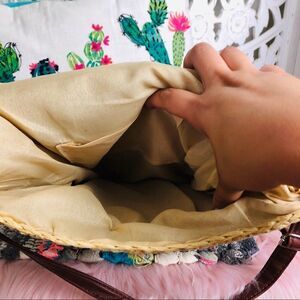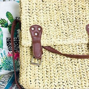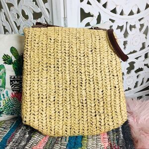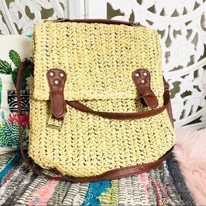 EUC Vintage Boho Belt Buckle Straw Backpack Bag